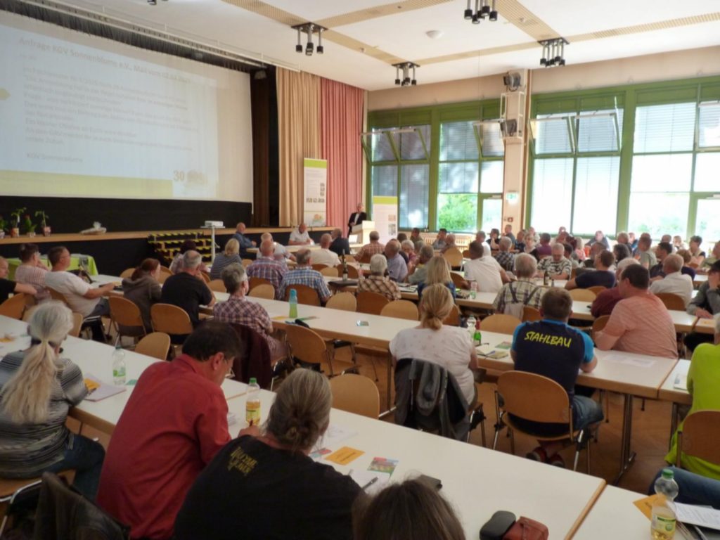 Neben dem obligatorischen Geschäfts- und Tätigkeitsberichtbericht des RVK und den neuesten Info´s aus dem Landesverband wusste unser Geschäftsführer Gerd Steffen in knapp 90 Minuten uns umfangreich zu unterhalten. So ging er auf die zurückliegenden Jahre des Regionalverbandes ein, auf die Veränderungen in der Zeit. Kannte man beispielsweise zu VKSK Zeiten keine Streitigkeiten um den Boden und die Pacht, tauchen heutzutage Leute auf, sei es Erben, Verwalter, Bodenspekulanten oder ähnliches, die Anspruch auf Grund und Boden stellen um die Flurstücke entgegen dem Bundeskleingartengesetzes und dem daraus abzuleitenden Schutzes des Kleingartenvereines gewinnbringend vermarkten zu wollen. Einhergehend damit folgte der Rückblick auf den Zusammenschluss der Verbände Oelsnitz und Plauen im Jahre 1995, ebenfalls ein Mittwoch. Der Name „Regionalverband Vogtländischer Kleingärtner e.V., Sitz Plauen“ wurde damals einstimmig durch die Vertreter der Mitgliedsvereine beschlossen. Von den damaligen 181 Vereinen bestehen heute noch 174, allein 130 Vereine liegen im Stadtgebiet Plauen. Damit ist Plauen, auch wenn bewusst nicht als Stadtverband deklariert, nach Dresden, Leipzig und Chemnitz, der viertgrößte Verband, gemessen an den zugehörigen Mitgliedsvereinen, in Sachsen. Um nun nicht allzu lange in der Geschichte zu verharren, kam unser Fachberater des Regionalverbandes, Christian Müller, zu Wort und widmete sich in seinem Vortrag ganz bewusst der aktuellen Wetterlage und dem Wassermangel. Dabei gab es etliche Tipps in Hinblick der Bewässerung unserer mühevoll angezogenen Pflänzchen mittels Ollas und der damit einhergehenden Wassereinsparung, auf Grund der aktuellen Trockenheit ist ein ganz großes Thema. Die Verwendung und Vorteile sind dabei nicht ganz neu, so wurde das bereits im römischen Reich und der Han-Dynastie im alten China vor 2 Jahrtausenden genutzt. Christian Müller, Fachberater des Regionalverbandes Vogtländischer Kleingärtner e.V. Zum nächsten Tagesordnungspunkt stand an: Ein Grußwort unseres Bürgermeisters Steffen Zenner, der insbesondere die Aufopferung für das Ehrenamt durch die Vereinsvorstände hervorhob und zum Zusammenhalt unter uns Kleingärtner aufrief. So „kämpfen“ doch nahezu täglich um die 1.000 ehrenamtliche Vorstände der Kleingartenvereine, in ihrer Freizeit, für das Kleingartenwesen im Verein, in Plauen, im Vogtland. Dabei ging er dabei auch auf die Bedeutung unserer Kleingartenanlagen für das Stadtgrün in Plauen ein, so verteilen sich die Kleingartenvereine auf insgesamt 210 Hektar Fläche von denen wiederum 125 Hektar Land kommunal sind. Ebenso wurde die gute Zusammenarbeit zwischen der Stadtverwaltung und dem RVK hervorgehoben, sei es bei der Festveranstaltung „Spitzengenuss“ oder dem Wettbewerb um den Wanderpokal „Großer Holzapfel“ der von der Stadt Plauen ausgerufen wurde. Nun folgend, die Ehrung der Kleingartenvereine und deren Vorsitzenden mit einem „runden“ Geburtstag: – KGV Am Jahnteich Oelsnitz e.V., 75 Jahre – GV Althaselbrunn e.V., 75 Jahre – KGV Dobenau e.V., 100 Jahre – KGV Am Gut Heidenreich e.V., 75 Jahre – GV Gute Hoffnung II e.V., 75 Jahre – Torsten Grieser, Verbandsvorsitzender, Ehrennadel in Silber des LSK Abschließend bot der Regionalverband eine Feststunde, Catering durch Michael Frost, für die anwesenden Vereinsvertreter mit einem sehr umfangreichen Angebot an Hot Dog & Burgerstand, Eintöpfen, Kartoffelprodukten, Schnitzel, Gemüse, Obst, belegte Brötchen, Fisch & Co. sowie dem dazugehörigen Bier und Sekt aus der Kühlzeile um dem 30 jährigen Bestehen des Regionalverbandes und insbesondere deren angeschlossenen Vereinen einen kleinen Dank zu bieten.