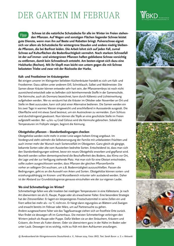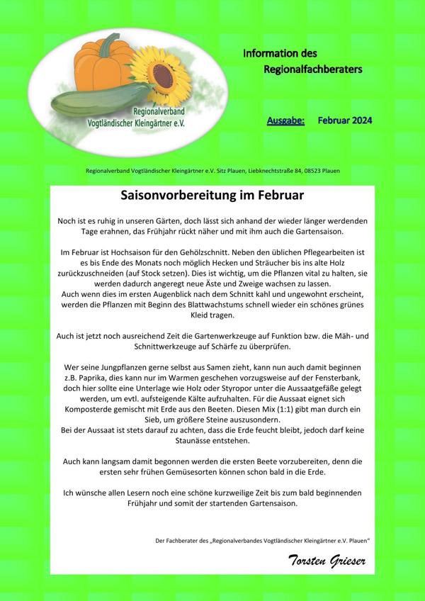 Wir empfehlen die aktuellen und monatlich neuen Fachberaterinformationen des Regionalen- und Landesgartenfachberaters: