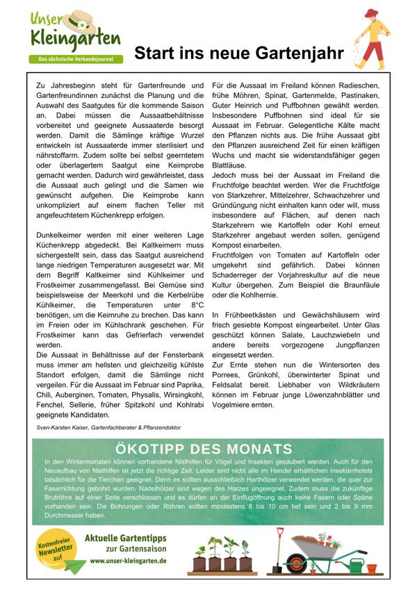 Der Landesgartenfachberater des Landesverbandes Sachsen der Kleingärtner e.V. empfiehlt in diesem Monat: