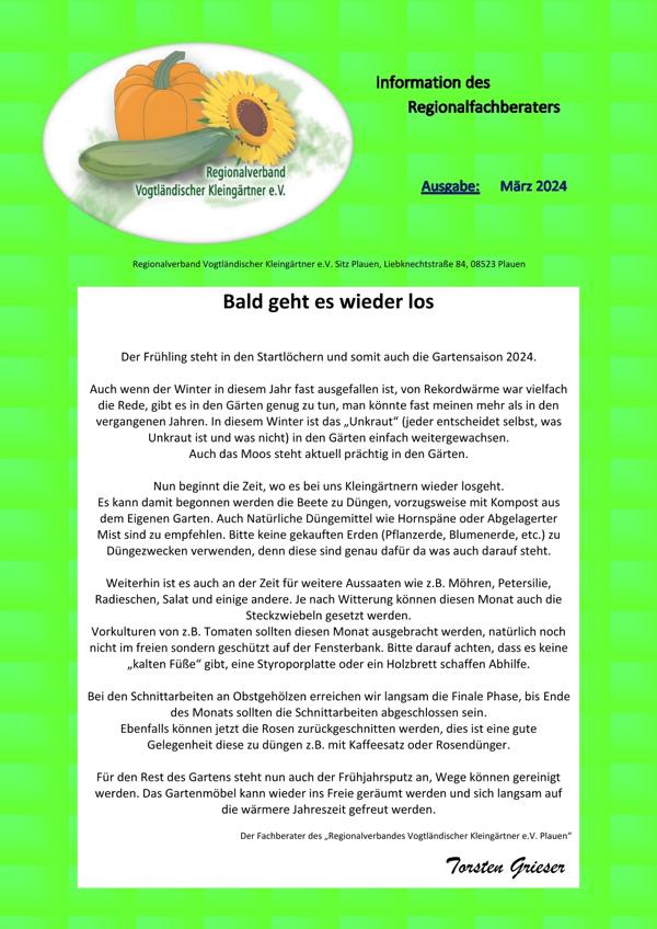 Wir empfehlen die aktuellen und monatlich neuen Fachberaterinformationen des Regionalen- und Landesgartenfachberaters: