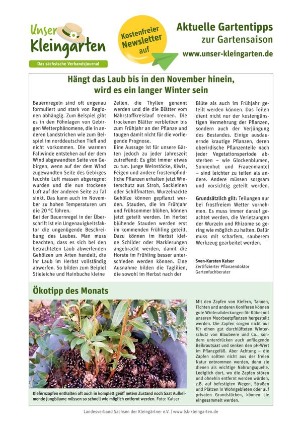 Der Landesgartenfachberater des Landesverbandes Sachsen der Kleingärtner e.V. empfiehlt in diesem Monat:
