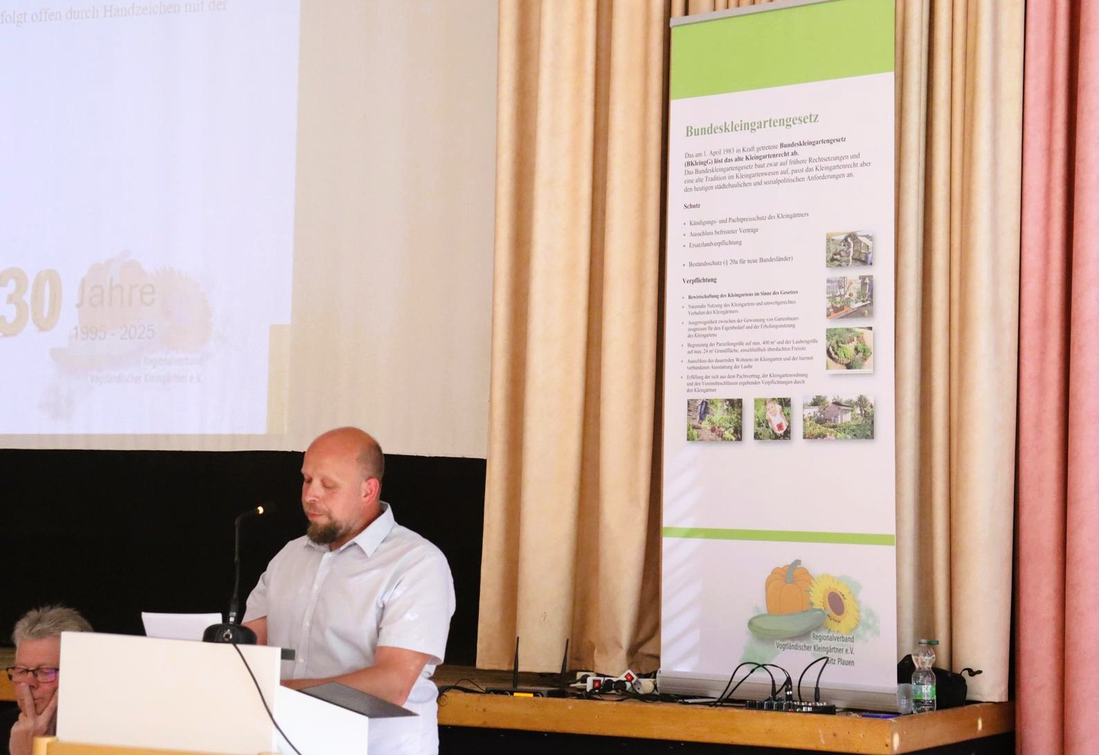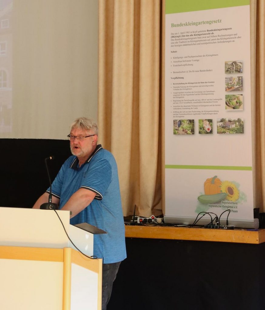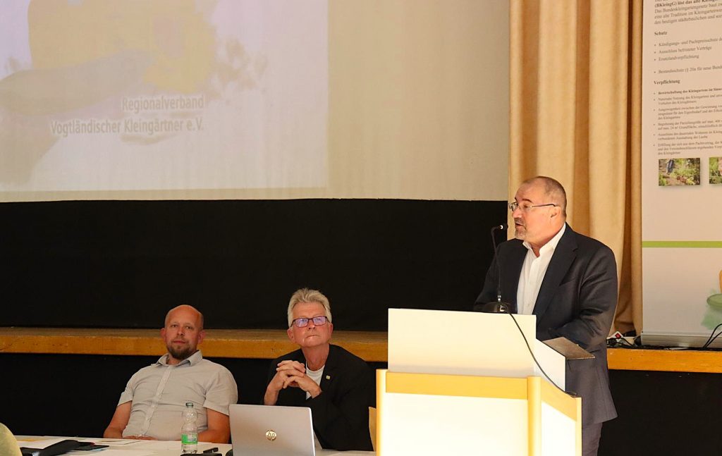Zum nächsten Tagesordnungspunkt stand an: Ein Grußwort unseres Bürgermeisters Steffen Zenner, der insbesondere die Aufopferung für das Ehrenamt durch die Vereinsvorstände hervorhob und zum Zusammenhalt unter uns Kleingärtner aufrief. So „kämpfen“ doch nahezu täglich um die 1.000 ehrenamtliche Vorstände der Kleingartenvereine, in ihrer Freizeit, für das Kleingartenwesen im Verein, in Plauen, im Vogtland.