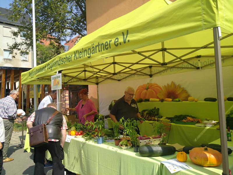 Gegen eine Spende werden die ausgestellten Gartenprodukte und zusätzlich auf dem Kleingärtnermarkt an Liebhalber der regionalen Waren abgeben.